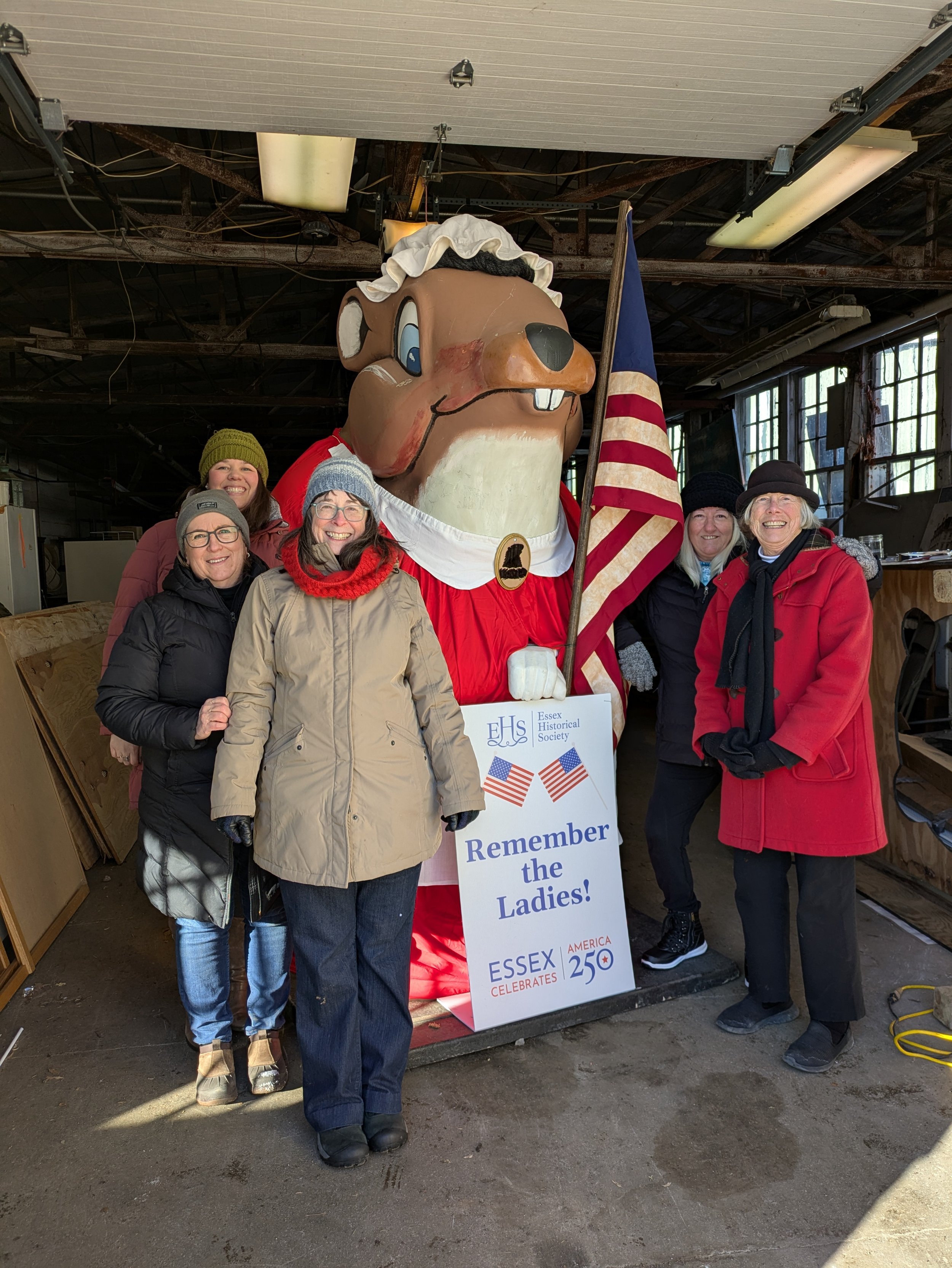 In collaboration with the Essex America 250 Commission, EHS was excited to dress “Essex Edna,” the town groundhog, in 18th century garb, replete with mob cap. Adorned with the words of Abigail Adams, “Remember the Ladies!,” Edna reminds us of the many contributions made by women during our nation’s founding.
